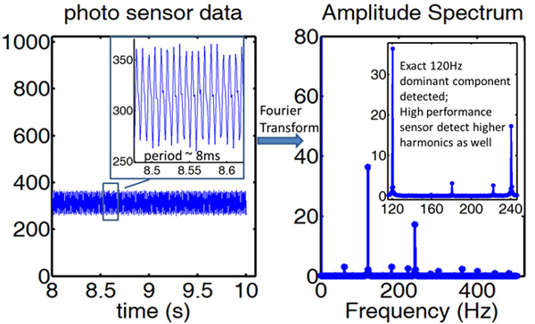 flickers at a frequency of 120 Hz (twice the 60 Hz AC