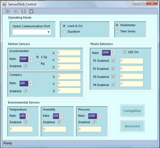 types of sensors can be turned on/off and the sampling rate can be adjusted.
