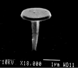 microdisk laser supported by an InP post on an InP substrate. The disk is 1.6 um